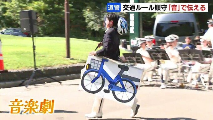 さらにスマホの「ながら運転」や飲酒運転の禁止といった交通ルールについての音楽劇も披露され、観客は洗練されたパフォーマンスを楽しんでいました。