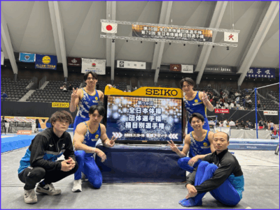 団体戦では攻める構成を貫きながら挑戦し、来季につながる課題と収穫が得られました。また、個人の舞台となる種目別選手権では、あん馬・長崎柊人が“予選1位 → 団体貢献点トップ → 決勝1位”の完全優勝を達成。前田航輝はゆかで4位入賞と、日本トップクラスとの接戦を演じました。