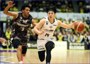 ドリブルするレバンガ北海道の星野