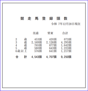 競走馬登録数(令和7年12月28日現在)